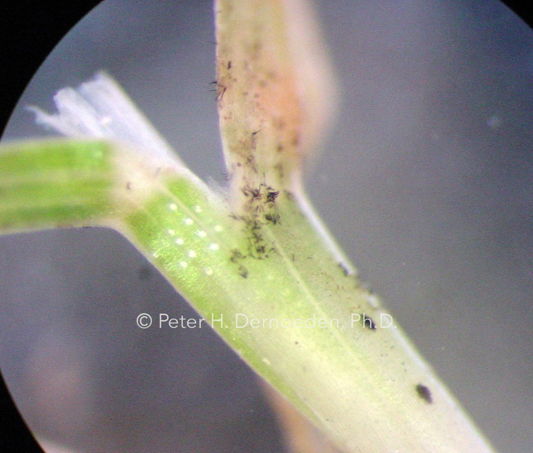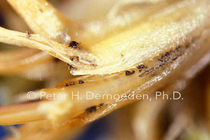 Look closely for acervuli on green sheaths of discolored Poa.