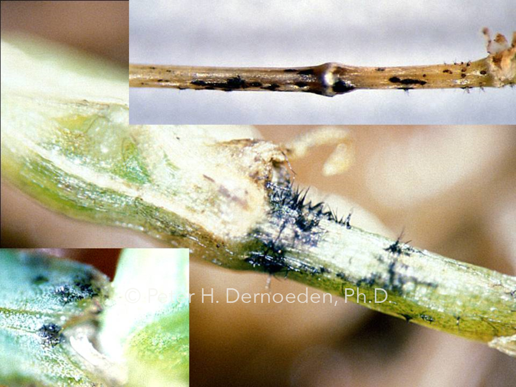 So many signs- black rot of stem base; black fly speck infection cushions; and massive infection mats on stem bases under high mag.